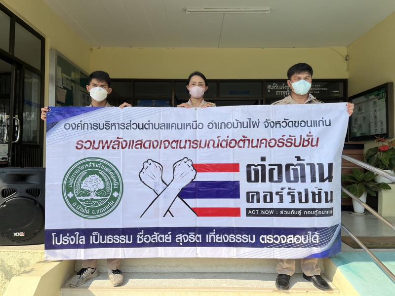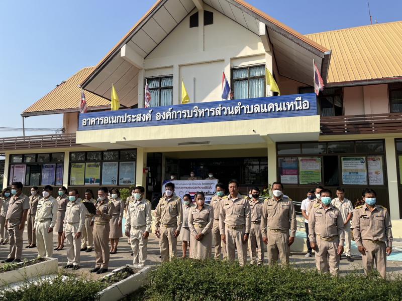 รายละเอียด : วันที่ 6 กุมภาพันธ์ 2566 เวลา 08.00 น. องค์การบริหารส่วนตำบลแคนเหนือ นำโดย นายภิญโญ ศรีทัพสกุลชาย นายกองค์การบริหารส่วนตำบลแคนเหนือ นำคณะผู้บริหาร ประธานสภาอบต. รองประธานสภาอบต. ปลัดองค์การบริหารส่วนตำบล รองปลัดองค์การบริหารส่วนตำบล ผู้อำนวยการกอง หัวหน้าส่วนราชการ พนักงานส่วนตำบล พนักงานครูอบต. ลูกจ้างประจำ พนักงานจ้าง ในสังกัด และสมาชิกสภาอบต.แคนเหนือ จัดกิจกรรมเคารพธงชาติ และกิจกรรมการแสดงเจตจำนงสุจริตในการบริหารงาน โดยนำกล่าวคำปฏิญาณตนแสดงเจตนารมณ์รวมพลังต่อต้านการทุจริตคอร์รัปชั่น “โปร่งใส เป็นธรรม ซื่อสัตย์ สุจริต เที่ยงธรรม ตรวจสอบได้” พร้อมร่วมแสดงทำสัญลักษณ์ต่อต้านการทุจริต คอร์รัปชั่น มือขวาทับมือซ้าย ณ บริเวณหน้าเสาธง องค์การบริหารส่วนตำบลแคนเหนือ อำเภอบ้านไผ่ จังหวัดขอนแก่น
