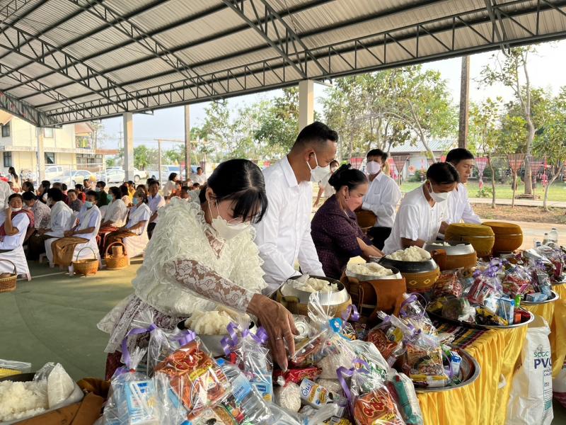 พิธีทำบุญตักบาตร เลี้ยงพระ และพิธีเจริญพระพุทธมนต์