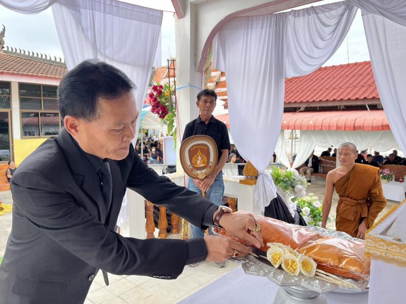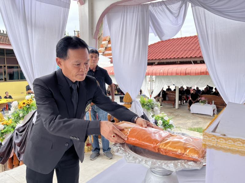 "นายภิญโญ ศรีทัพสกุลชาย" นายกองค์การบริหารส่วนตำบลแคนเหนือ เป็นประธานวางผ้าไตรบังสุกุลไตรปิด งานฌาปนกิจศพ "นายอำนาจ หมื่นไตร" บ้านแคนเหนือ ม.1