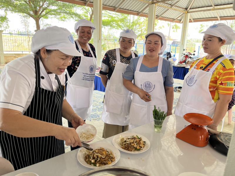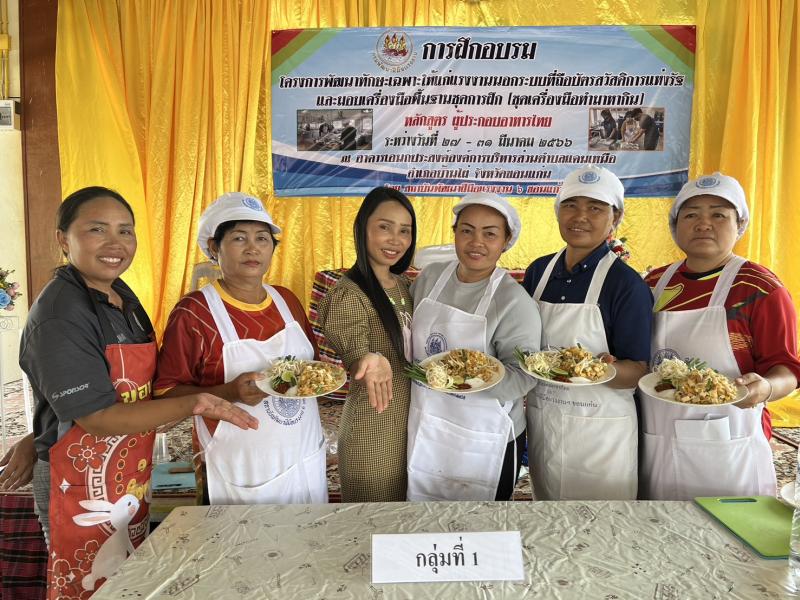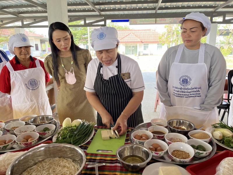 รายละเอียด : วันที่ 28 มีนาคม 2566 เวลา 09.00 น. องค์การบริหารส่วนตำบลแคนเหนือ นำโดย "นายภิญโญ ศรีทัพสกุลชาย" นายกองค์การบริหารส่วนตำบลแคนเหนือ ร่วมกับสถาบันพัฒนาฝีมือแรงงาน 6 ขอนแก่น ได้จัดโครงการพัฒนาทักษะเฉพาะให้แก่แรงงานนอกระบบที่ถือบัตรสวัสดิการแห่งรัฐและมอบเครื่องมือพื้นฐานชุดการฝึก (ชุดเครื่องมือทำมาหากิน) หลักสูตร ผู้ประกอบอาหารไทย ระหว่างวันที่ 27 - 31 มีนาคม 2566 กิจกรรมฝึกอบรมภาคปฏิบัติ วันที่ 28 มีนาคม 2566 - ช่วงเช้า ฝึกปฏิบัติ ผัดไทย - ช่วงบ่าย ฝึกปฏิบัติ ตะโก้มันม่วง ณ ศูนย์ส่งเสริมและพัฒนาคุณภาพชีวิตผู้สูงอายุและคนพิการ องค์การบริหารส่วนตำบลแคนเหนือ
