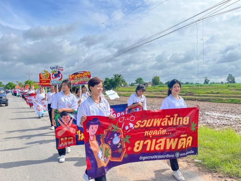 รายละเอียด : วันที่ 25 มิถุนายน 2567 เวลา 08.30 น. องค์การบริหารส่วนตำบลแคนเหนือ นำโดย "นายภิญโญ ศรีทัพสกุลชาย" นายกองค์การบริหารส่วนตำบลแคนเหนือ จัดกิจกรรมเดินรณรงค์ ดังนี้ 1. รณรงค์ ต่อต้านยาเสพติด 2. รณรงค์ ป้องกันและแก้ไขปัญหาไฟป่า หมอกควันและฝุ่นละอองขนาดเล็ก(PM 2.5) 3. รณรงค์ป้องกันโรคไข้เลือดออก 4. รณรงค์การบริหารจัดการขยะ พร้อมเยี่ยมชมนิทรรศการเฉลิมพระเกียรติพระบาทสมเด็จพระเจ้าอยู่หัว เนื่องในโอกาสเฉลิมพระชนมพรรษา 6 รอบ 28 กรกฎาคม โดยมีคณะผู้บริหาร ปลัด อบต. รองปลัด อบต. ผู้อำนวยการกอง หัวหน้าสำนักปลัด สมาชิกสภาท้องถิ่น หัวหน้าส่วนราชการ กำนัน ผู้นำชุมชน ทีมอสม. พนักงานเจ้าหน้าที่อบต.แคนเหนือ ศพด.อบต.แคนเหนือ คณะครู นักเรียนโรงเรียนไตรคามประชาสรรค์ และโรงเรียนโคกโกโคกกลาง เข้าร่วมกิจกรรม ในเขตพื้นที่ถนนสายหลักตำบลแคนเหนือ