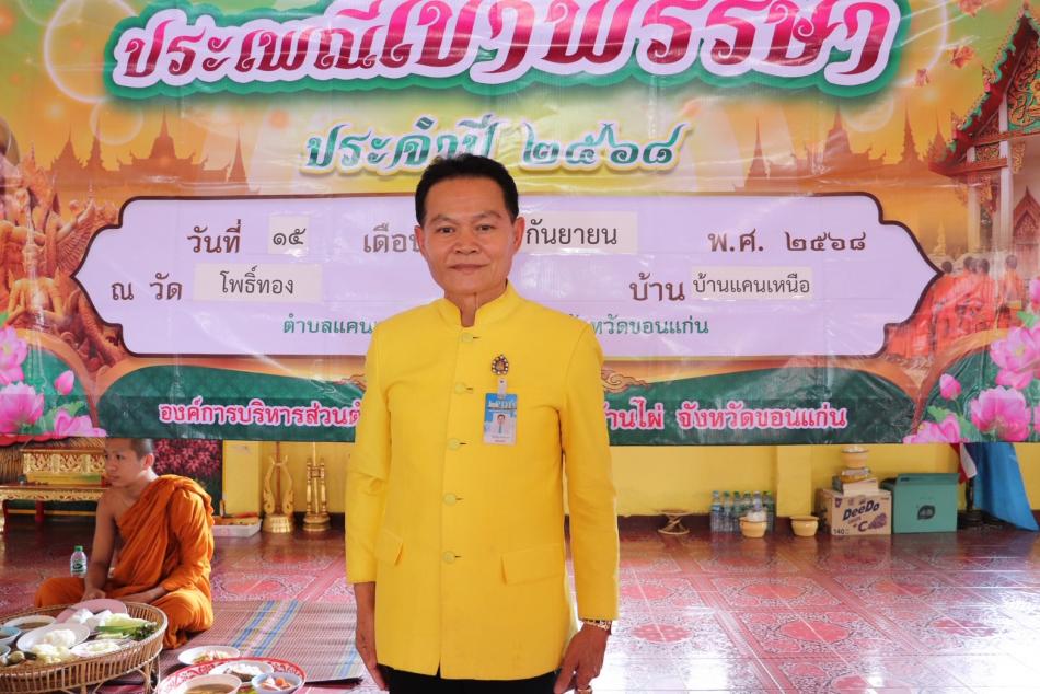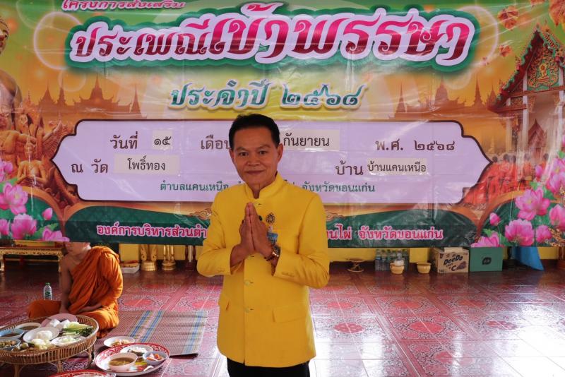 รายละเอียด : วันที่ 15 กันยายน 2568 เวลา 09.00 น. "นายภิญโญ ศรีทัพสกุลชาย" นายกองค์การบริหารส่วนตำบลแคนเหนือ เป็นประธานเปิดโครงการส่งเสริมประเพณีเข้าพรรษา ประจำปี 2568 โดยมีคณะผู้บริหาร ปลัด อบต. รองปลัด อบต. ผู้อำนวยการกอง หัวหน้าสำนักปลัด สมาชิกสภาท้องถิ่น หัวหน้าส่วนราชการ กำนัน ผู้นำชุมชน อุบาสก อุบาสิกา บ้านแคนเหนือ และพนักงานเจ้าหน้าที่อบต.แคนเหนือ เข้าร่วมโครงการ ณ วัดโพธิ์ทอง บ้านแคนเหนือ ม.1 ต.แคนเหนือ อ.บ้านไผ่ จ.ขอนแก่น