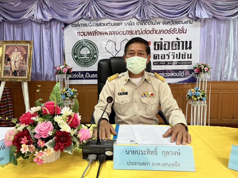 รายละเอียด : วันที่ 6 กุมภาพันธ์ 2566 เวลา 09.00 น. องค์การบริหารส่วนตำบลแคนเหนือ นำโดย นายภิญโญ ศรีทัพสกุลชาย นายกองค์การบริหารส่วนตำบลแคนเหนือ พร้อมด้วย คณะผู้บริหาร ประธานสภาอบต. รองประธานสภาอบต. สมาชิกสภาอบต.แคนเหนือ ปลัดองค์การบริหารส่วนตำบล รองปลัดองค์การบริหารส่วนตำบล หัวหน้าส่วนราชการ ร่วมแสดงเจตจำนงสุจริตในการบริหารงาน การทุจริตคอร์รัปชั่น “โปร่งใส เป็นธรรม ซื่อสัตย์ สุจริต เที่ยงธรรม ตรวจสอบได้” พร้อมแสดงสัญลักษณ์ต่อต้านการทุจริต คอร์รัปชั่น มือขวาทับมือซ้าย ก่อนประชุมสภาองค์การบริหารส่วนตำบลแคนเหนือ สมัยสามัญ สมัยที่ 1 ครั้งที่ 1 ประจำปีพ.ศ.2566 ณ ห้องประชุมสภาองค์การบริหารส่วนตำบลแคนเหนือ อำเภอบ้านไผ่ จังหวัดขอนแก่น