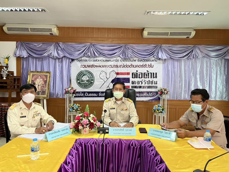 แสดงเจตจำนงสุจริตในการบริหารงาน การทุจริตคอร์รัปชั่น “โปร่งใส เป็นธรรม ซื่อสัตย์ สุจริต เที่ยงธรรม ตรวจสอบได้”