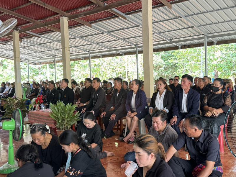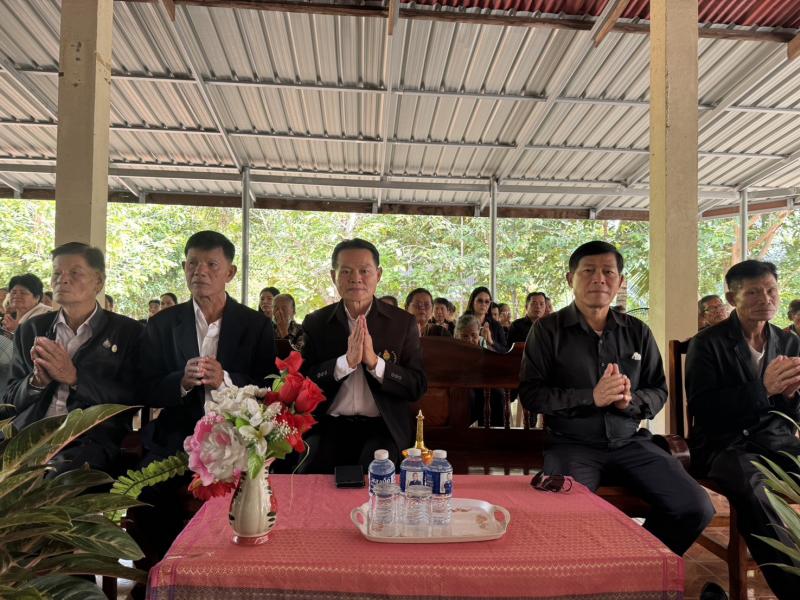 "นายภิญโญ ศรีทัพสกุลชาย" นายกองค์การบริหารส่วนตำบลแคนเหนือ วางผ้าไตรบังสุกุลไตรเปิด ในงานฌาปนกิจศพ "นางภา พันธ์ทำมา" บ้านโคกโก ม.7