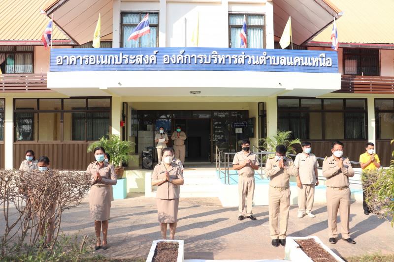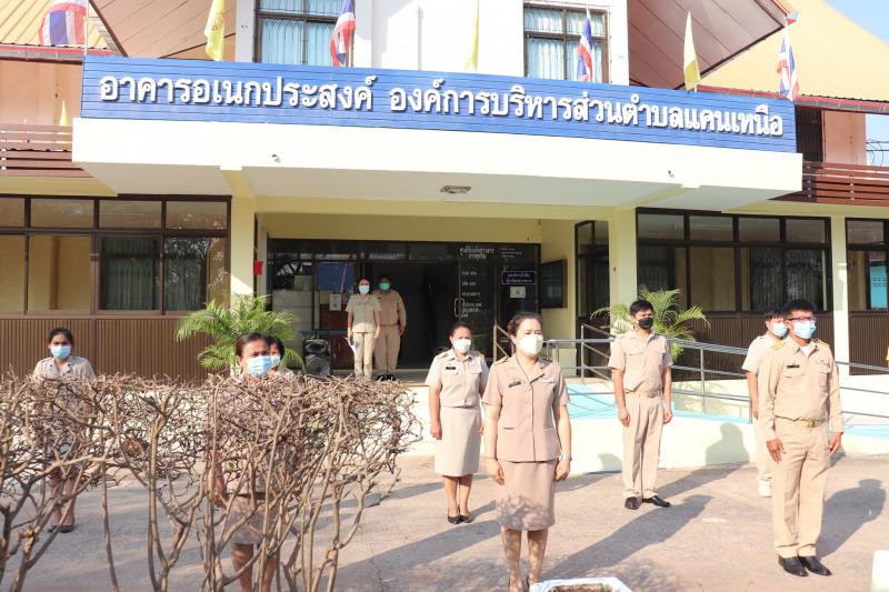องค์การบริหารส่วนตำบลแคนเหนือ โดย"นายภิญโญ ศรีทัพสกุลชาย" นายกองค์การบริหารส่วนตำบลแคนเหนือ มอบหมายให้คณะผู้บริหาร ผู้อำนวยการกอง หัวหน้าส่วนราชการ ข้าราชการ และพนักงานเจ้าหน้าที่ อบต.แคนเหนือ ร่วมกิจกรรมเคารพธงชาติ ณ องค์การบริหารส่วนตำบลแคนเหนือ