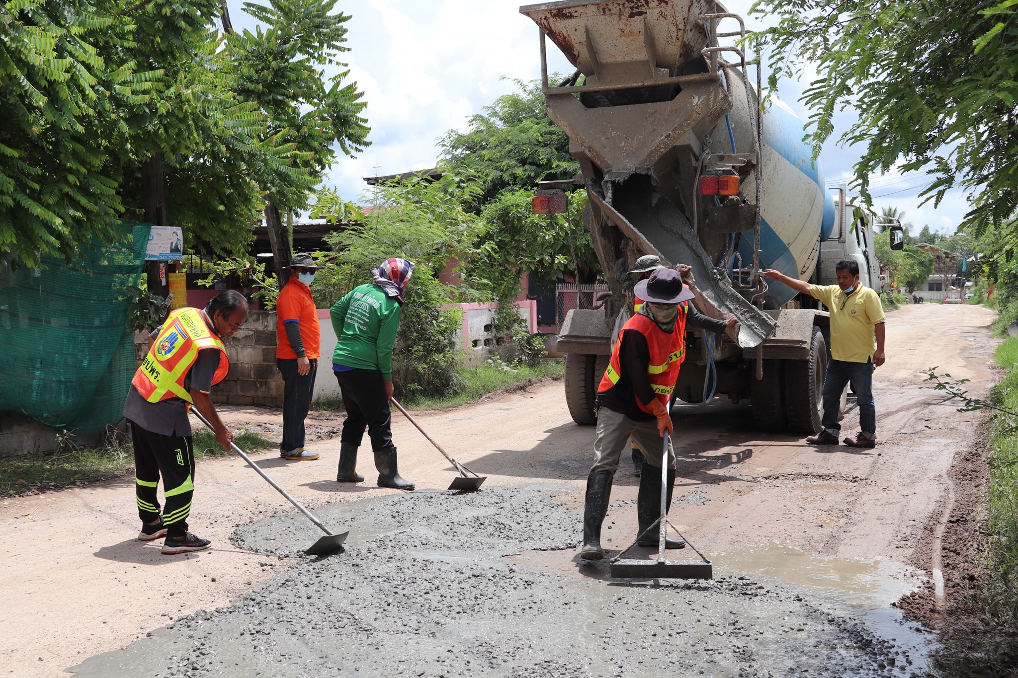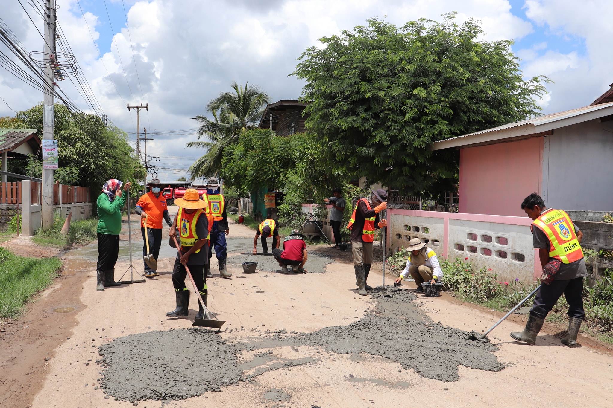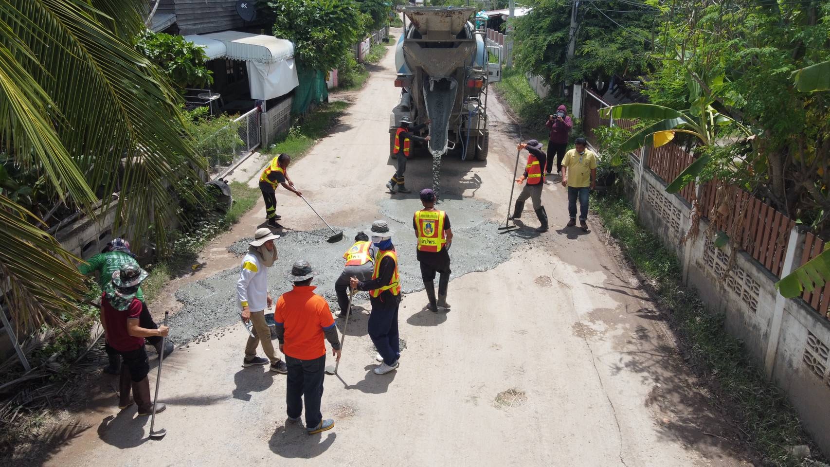 เจ้าหน้าที่งานป้องกันและบรรเทาสาธารณภัย ซ่อมแซมถนนชำรุด เพื่อความปลอดภัยของประชาชนที่ใช้ทางสัญจรภายในพื้นที่ตำบลแคนเหนือ ประจำปีงบประมาณ พ.ศ.2564
