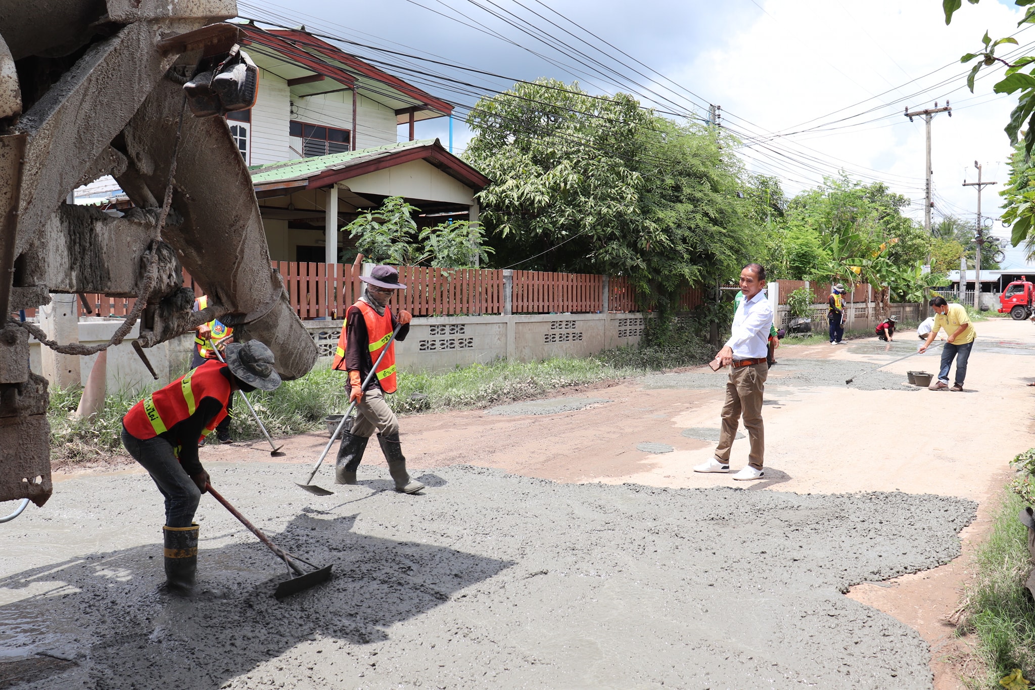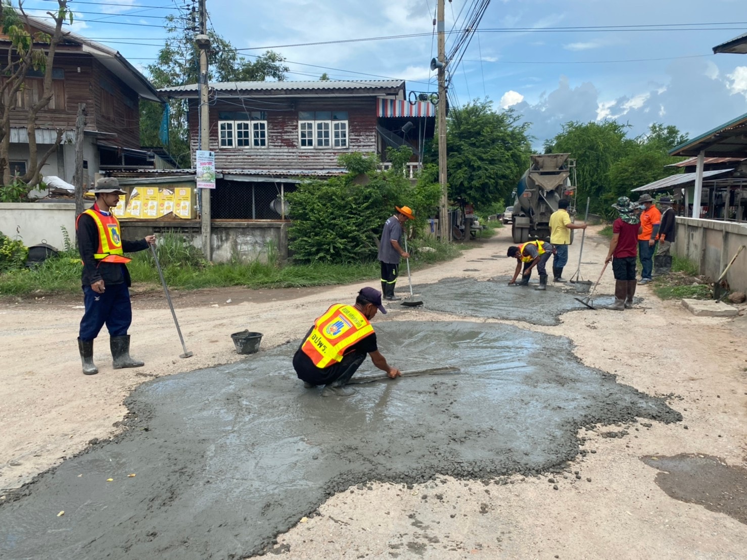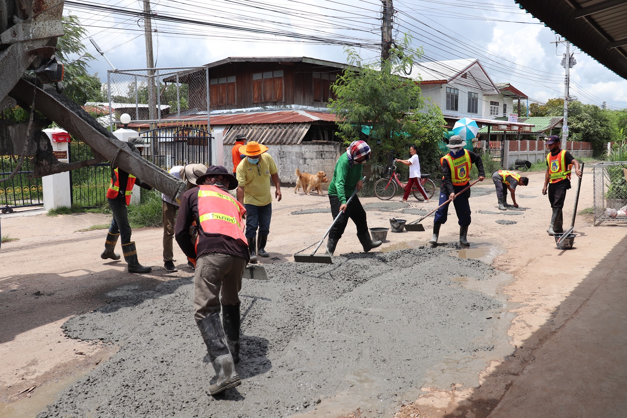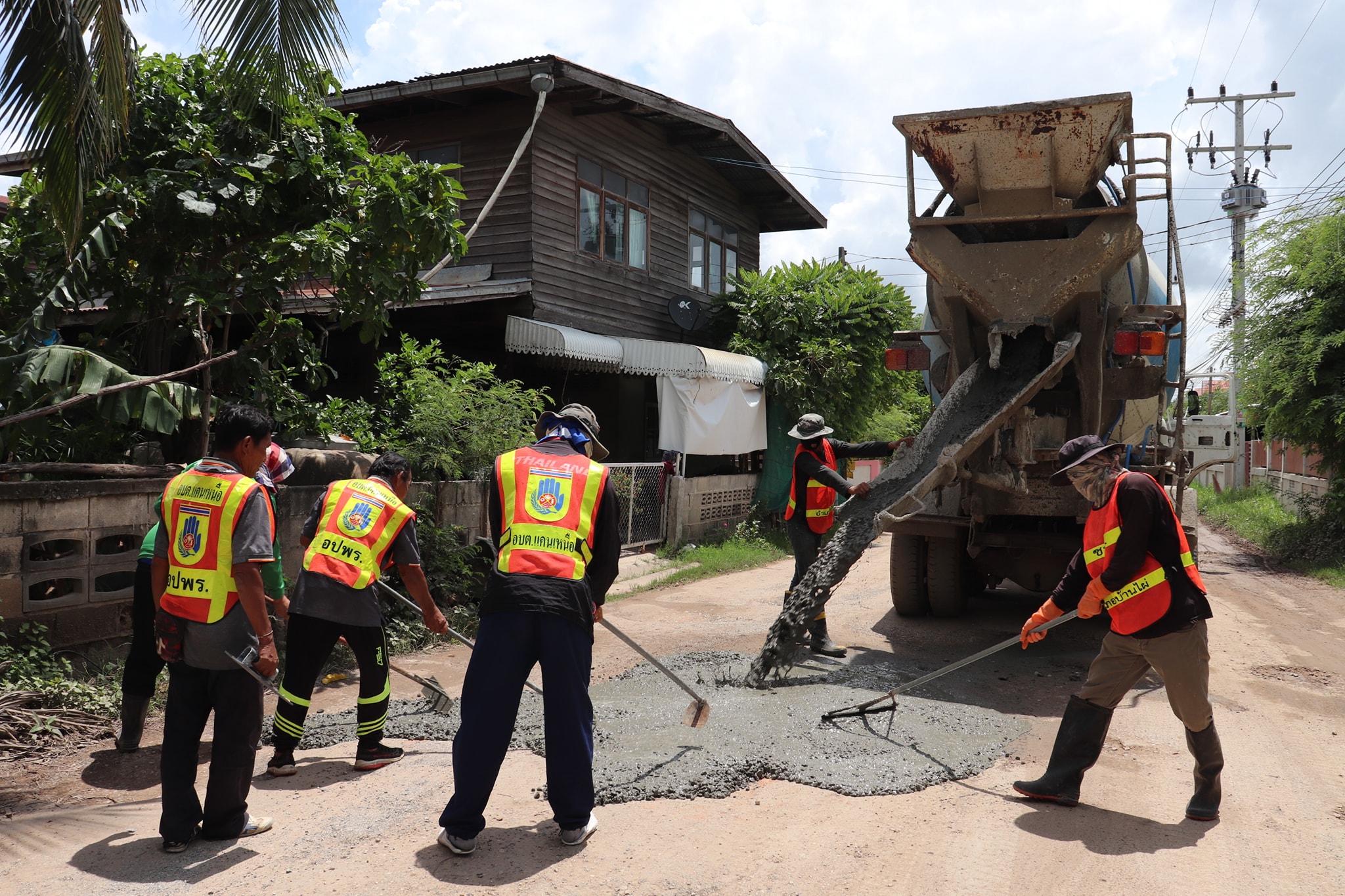 เจ้าหน้าที่งานป้องกันและบรรเทาสาธารณภัย ซ่อมแซมถนนชำรุด เพื่อความปลอดภัยของประชาชนที่ใช้ทางสัญจรภายในพื้นที่ตำบลแคนเหนือ ประจำปีงบประมาณ พ.ศ.2564