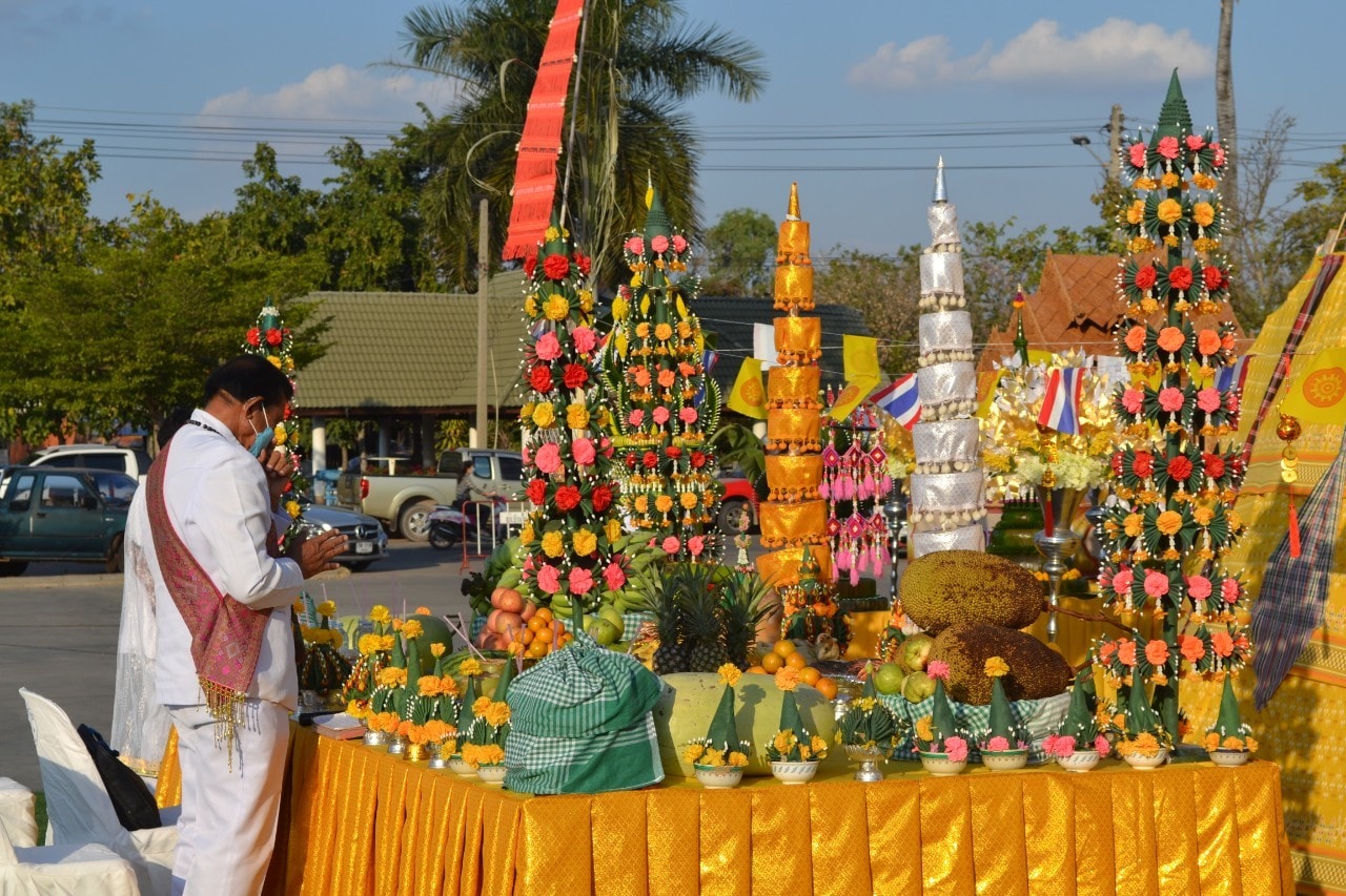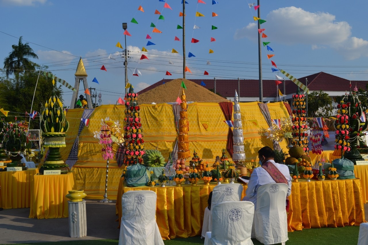พิธีบวงสรวงพระแม่โพสพและสู่ขวัญข้าวตามประเพณีบุญกุ้มข้าวใหญ่และของดีอำเภอบ้านไผ่ ประจำปี 2565
