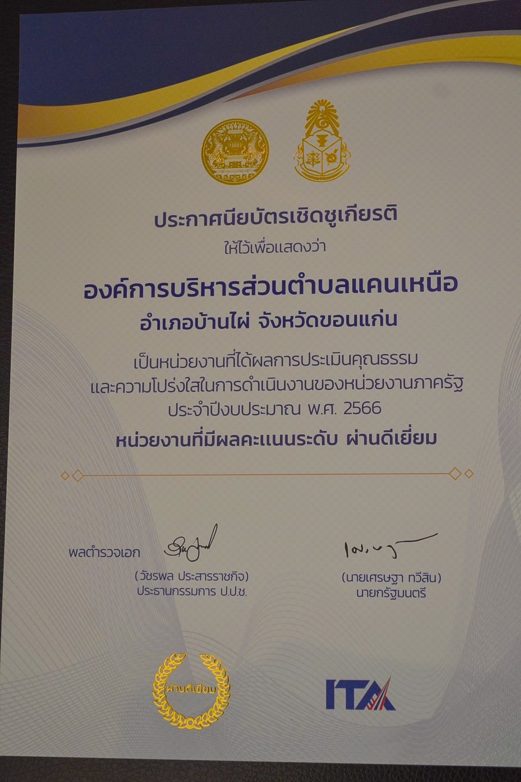 กิจกรรมเนื่องในงานวันต่อต้านคอร์รัปชันสากล (ประเทศไทย) จังหวัดขอนแก่น และรับใบประกาศนียบัตรเชิดชูเกียรติ ITA AWARDS 2023