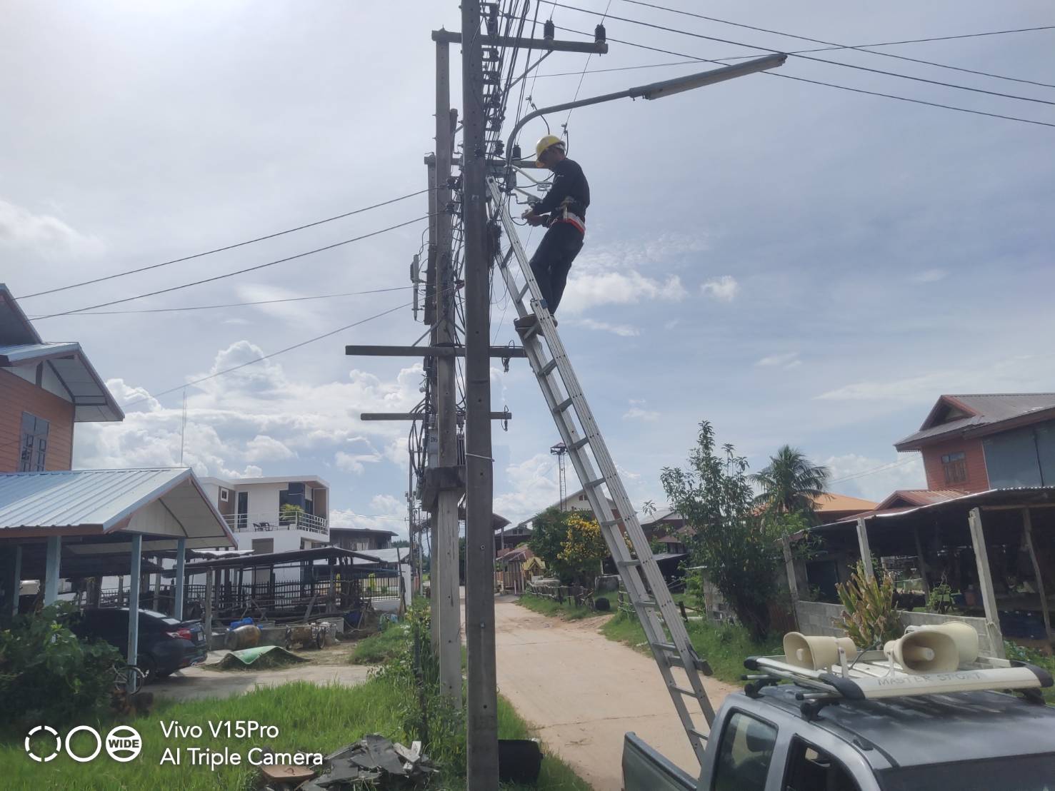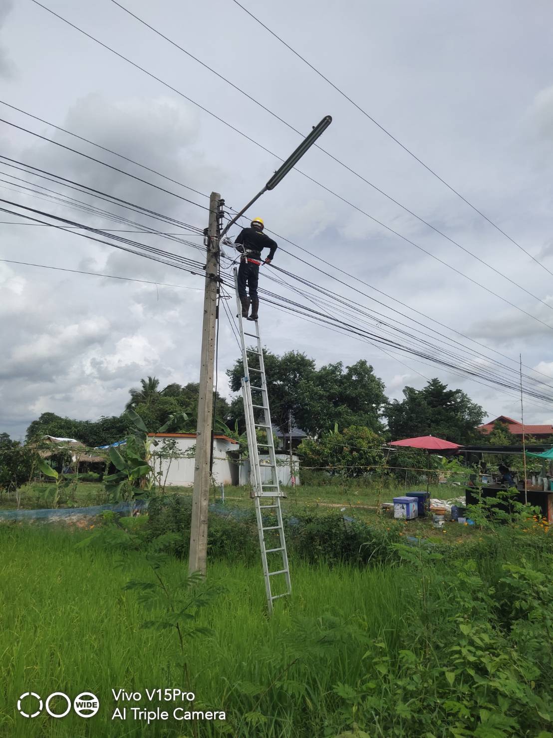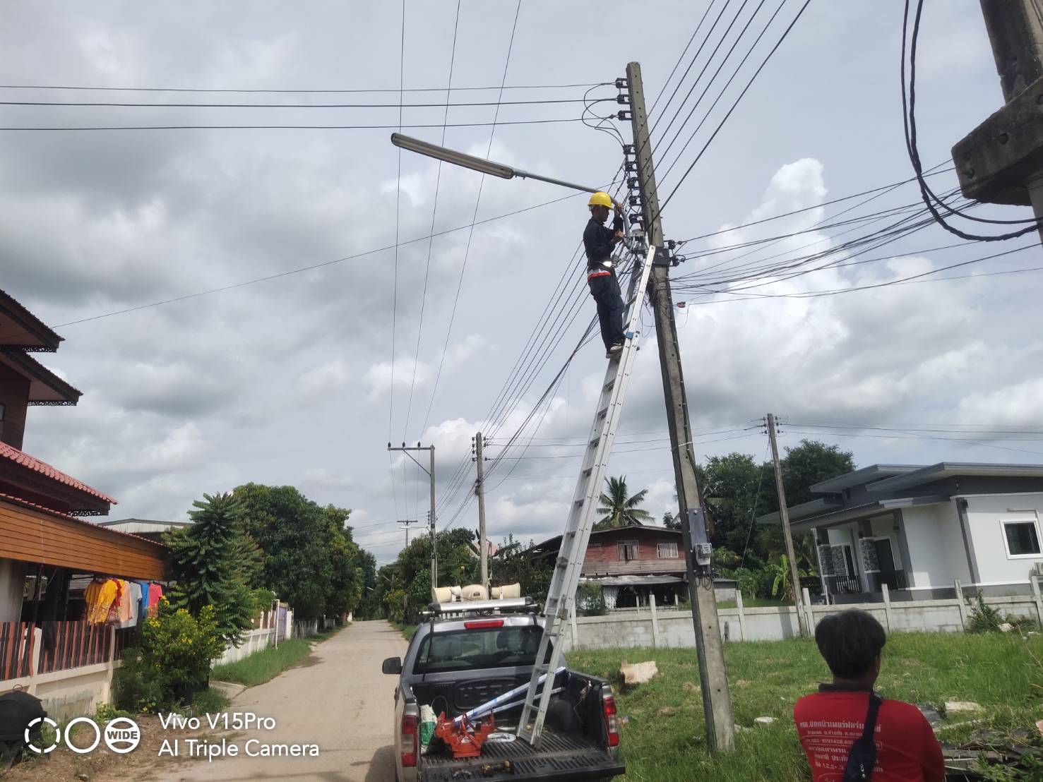 ปฏิบัติงานลงพื้นที่ดำเนินการซ่อมแซมไฟฟ้าส่องสว่าง บ้านเหล่าหลวง หมู่ที่ 4