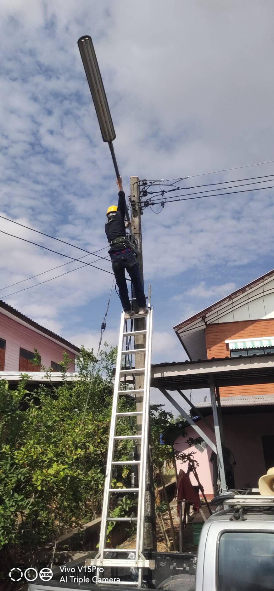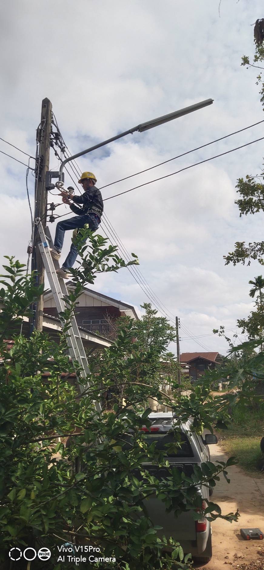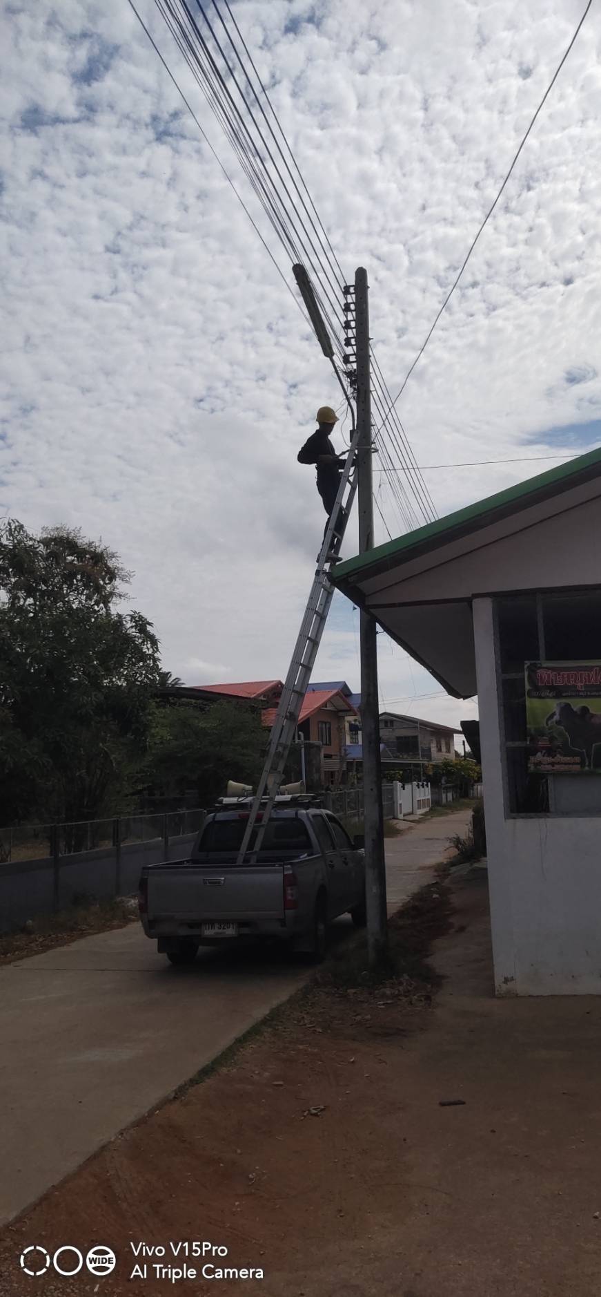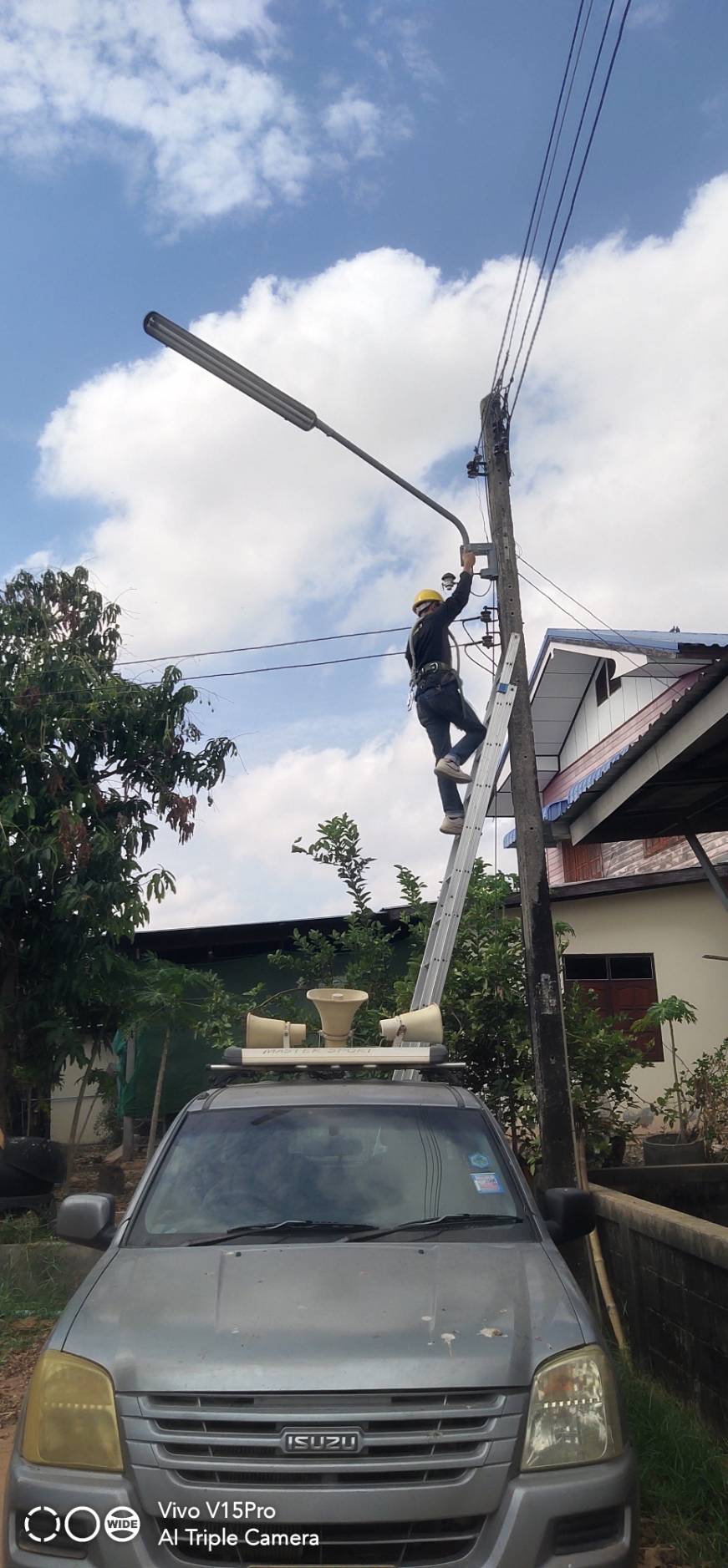 ปฏิบัติงานลงพื้นที่ดำเนินการซ่อมแซมไฟฟ้าส่องสว่าง บ้านดอนหมากพริก หมู่ที่ 2 และบ้านหนองเจ้าเมือง ม.6
