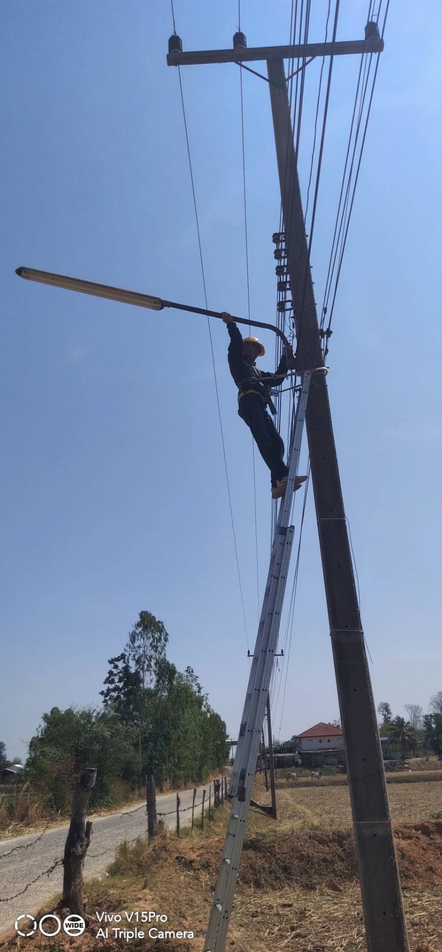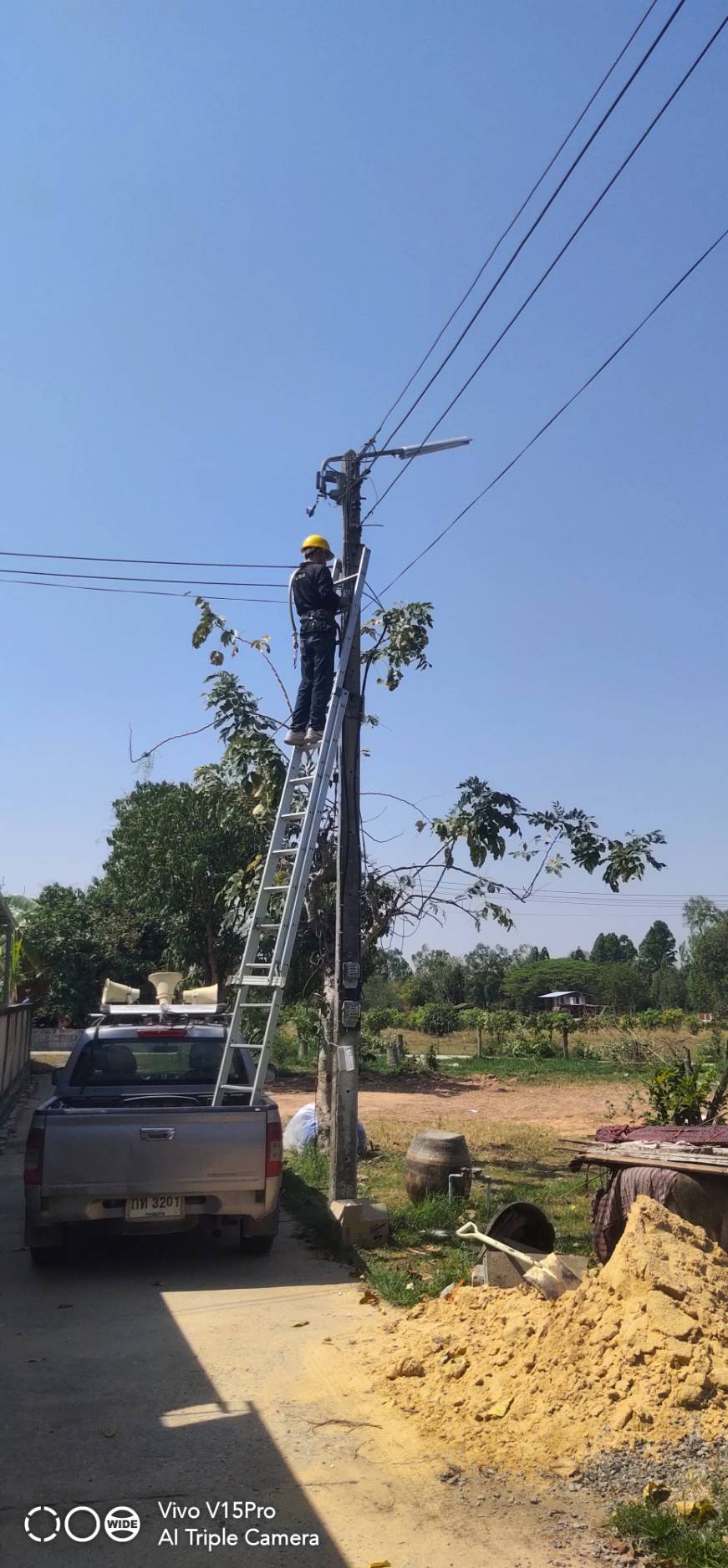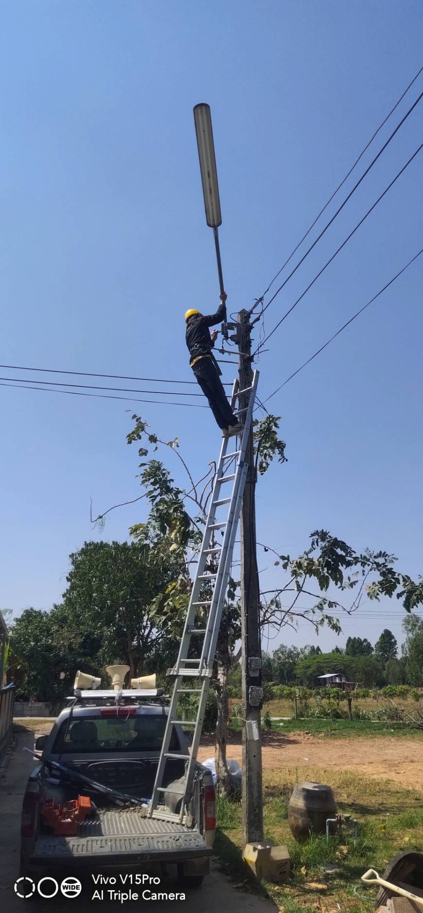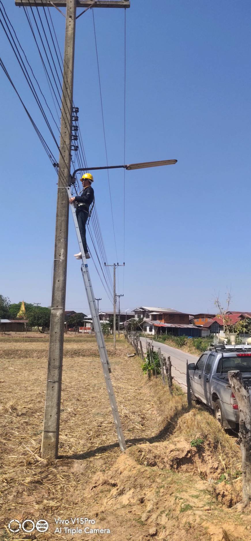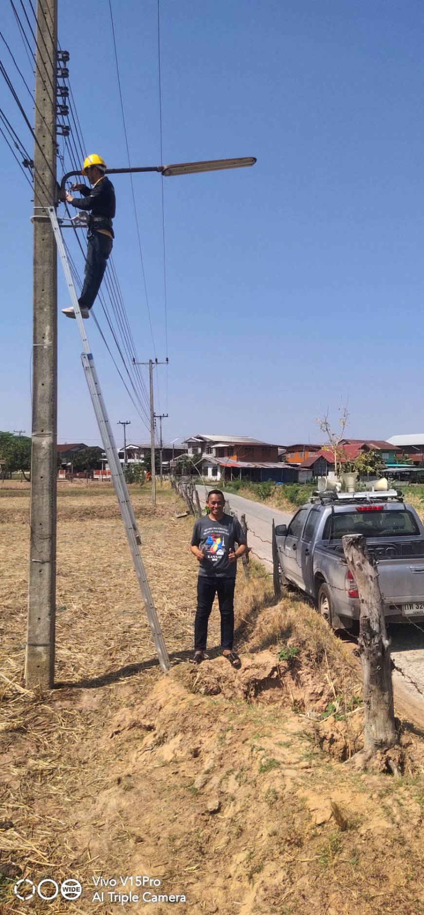 ปฏิบัติงานลงพื้นที่ดำเนินการซ่อมแซมไฟฟ้าส่องสว่าง บ้านหนองเจ้าเมือง หมู่ที่ 6
