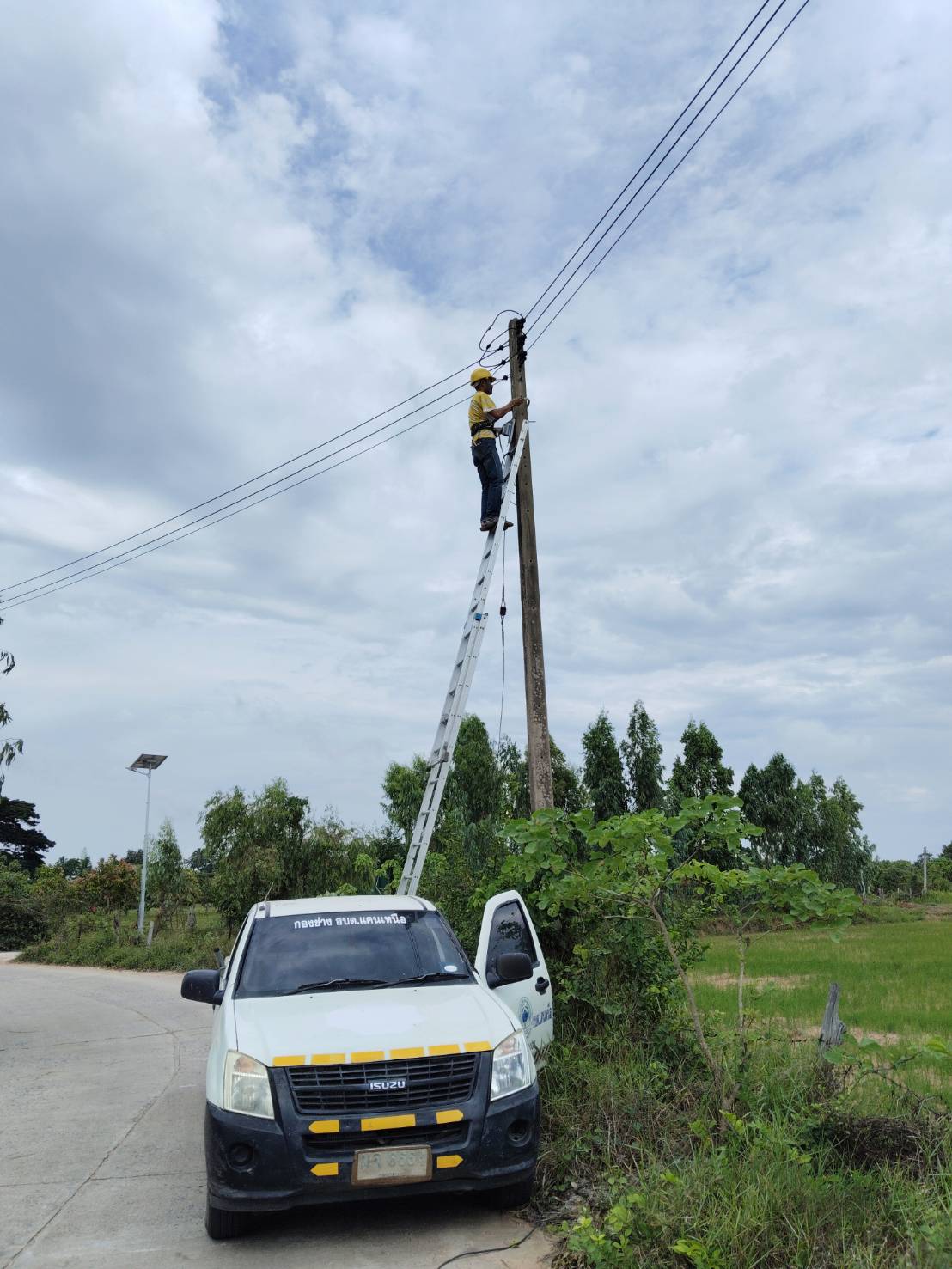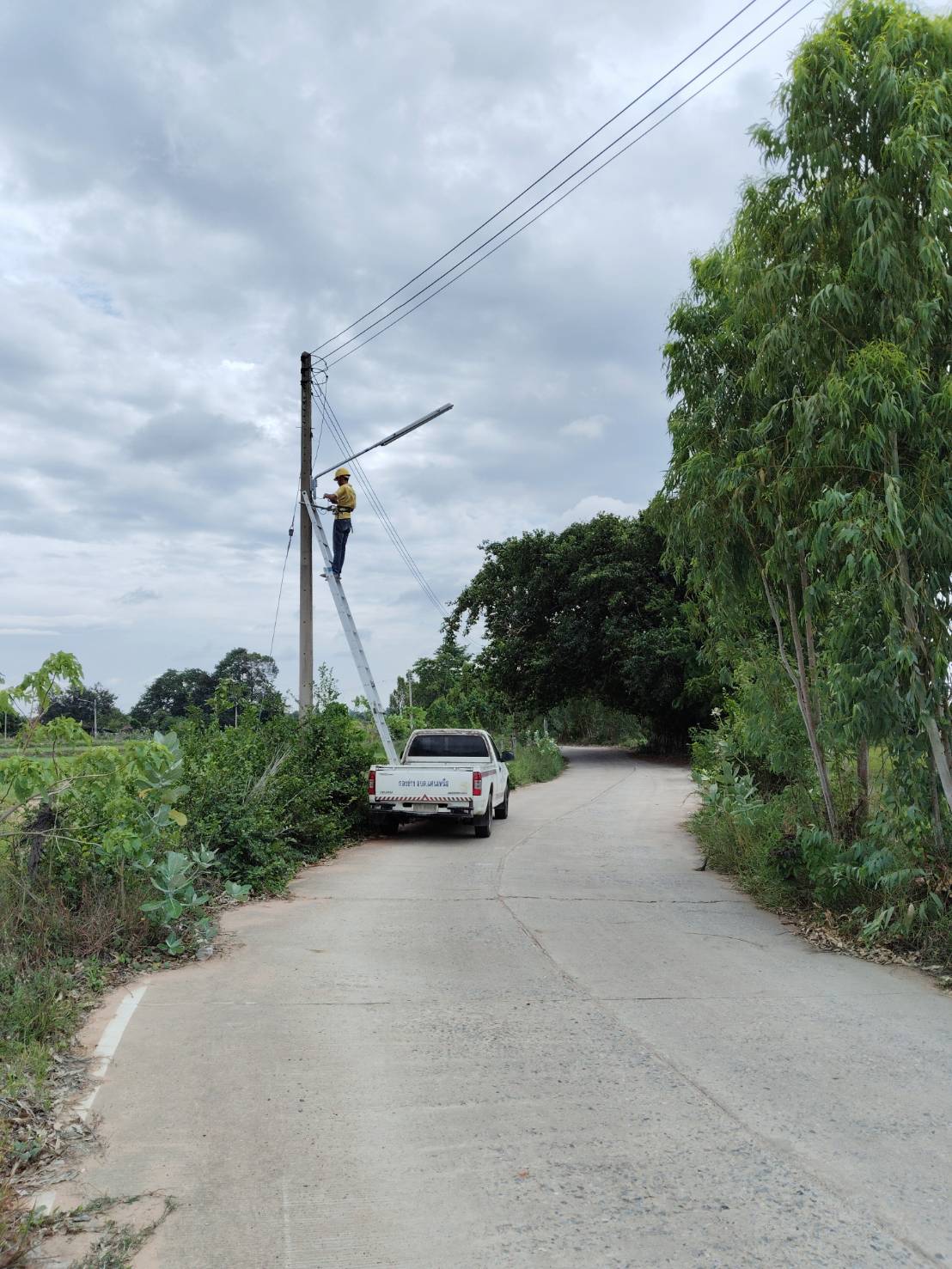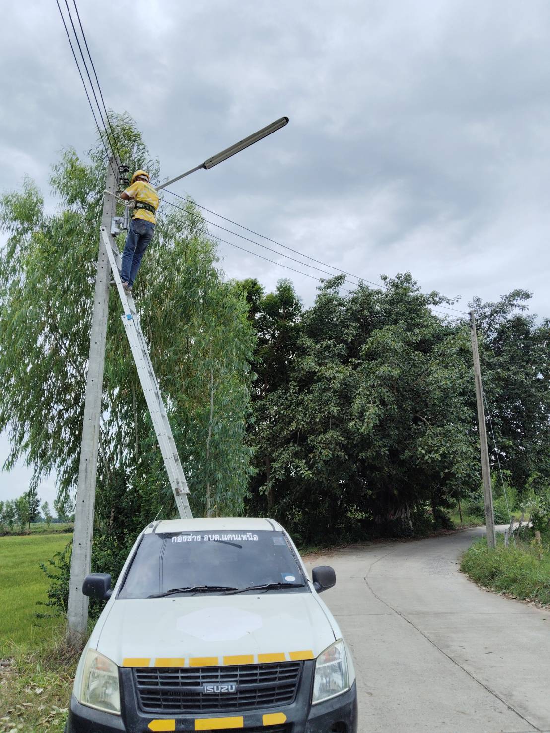 ปฏิบัติงานลงพื้นที่ดำเนินการซ่อมแซมไฟฟ้าส่องสว่าง หนองแวงสาธารณประโยชน์