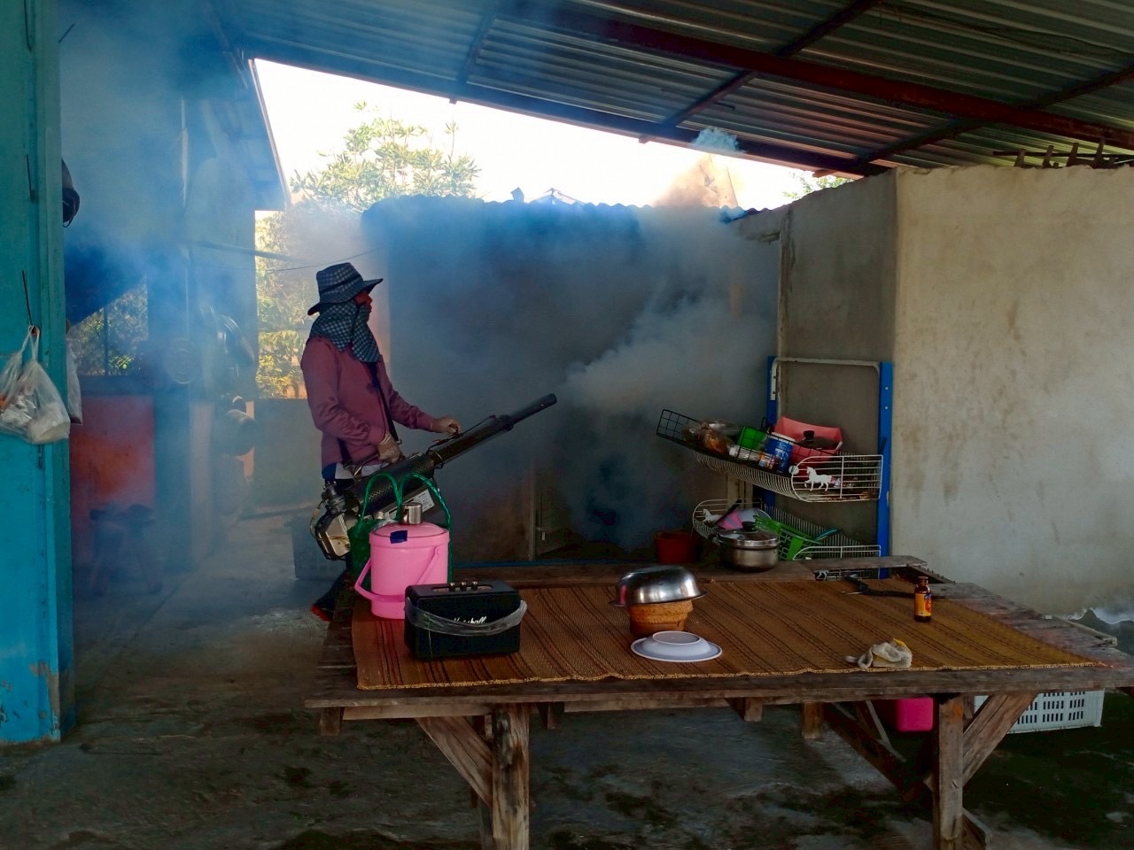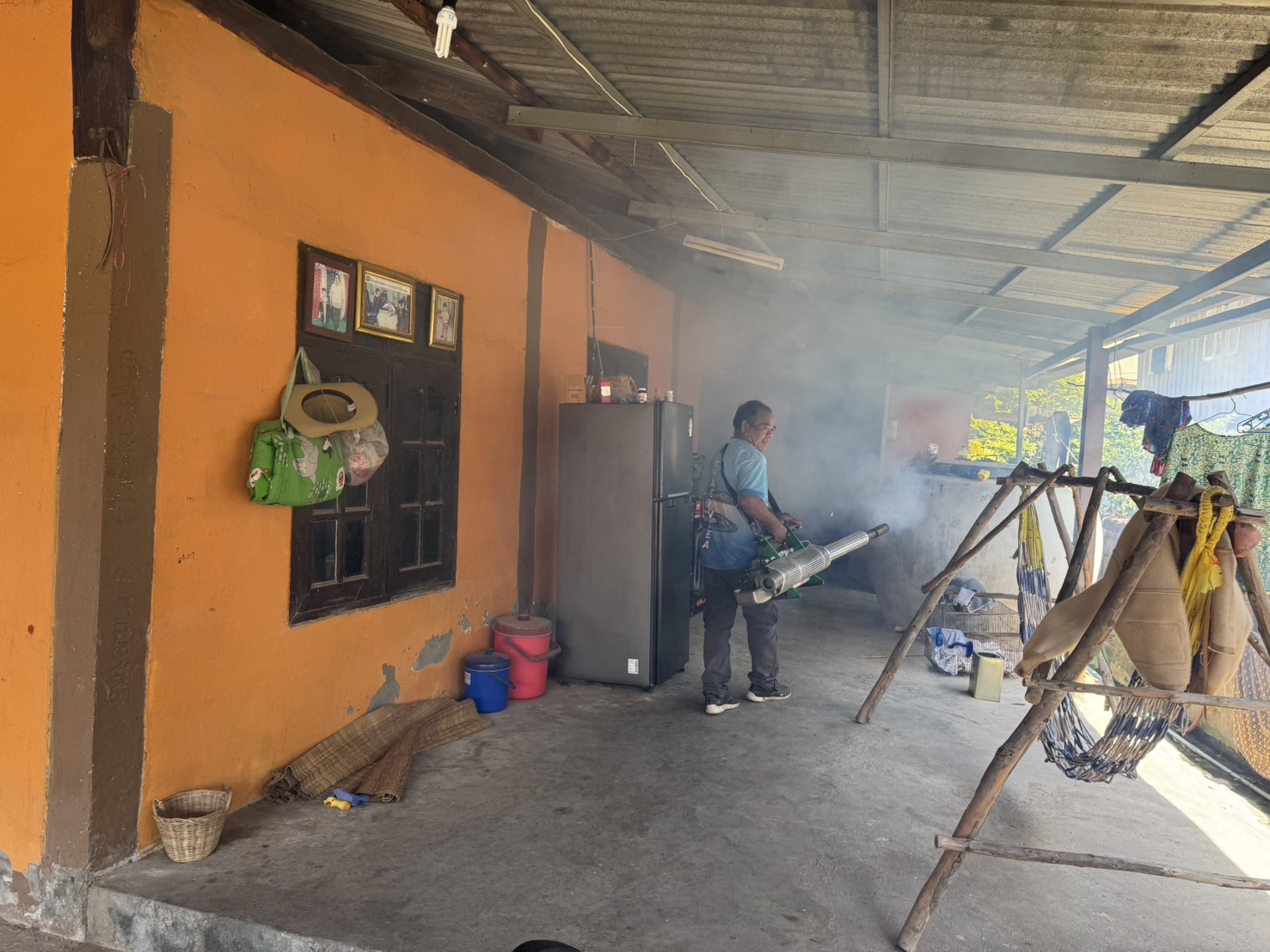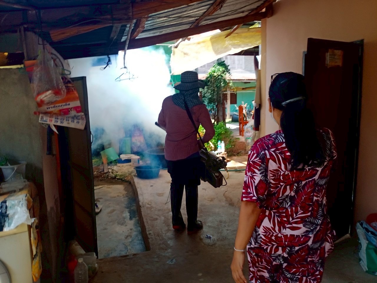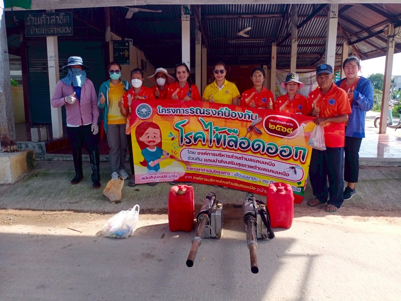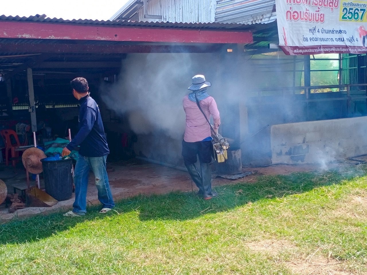 ปฏิบัติการงานควบคุมป้องกันโรคไข้เลือดออก ฉีดพ่นหมอกควัน ตามโครงการ รณรงค์ป้องกันและควบคุมโรคไข้เลือดออก ประจำปีงบประมาณ 2568 บ้านเหล่าหลวง ม.4