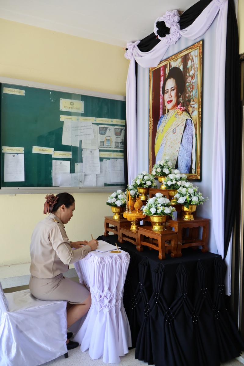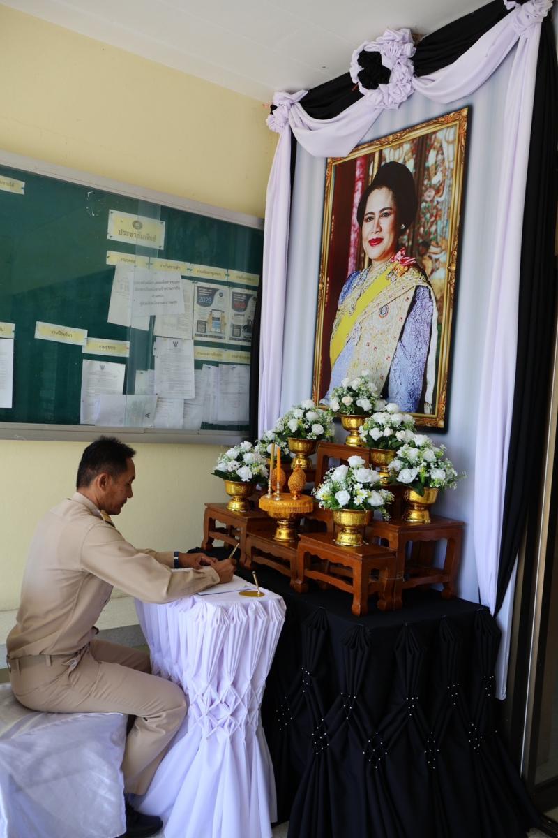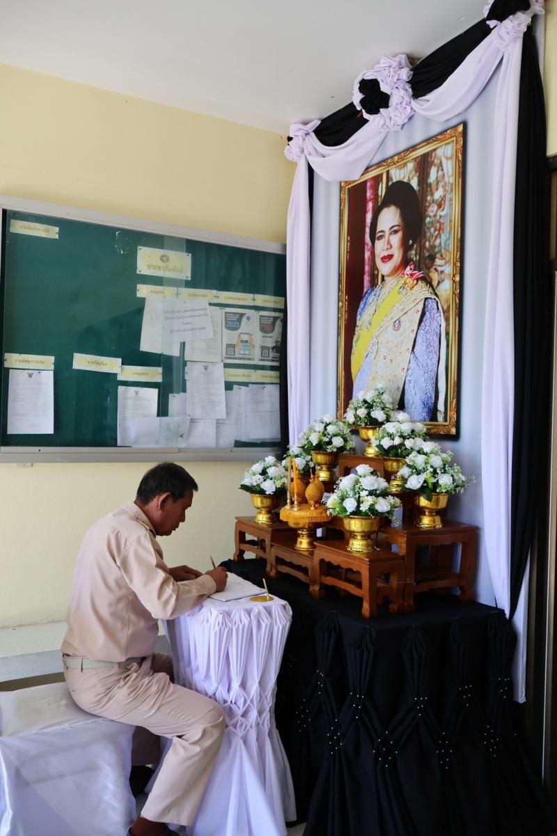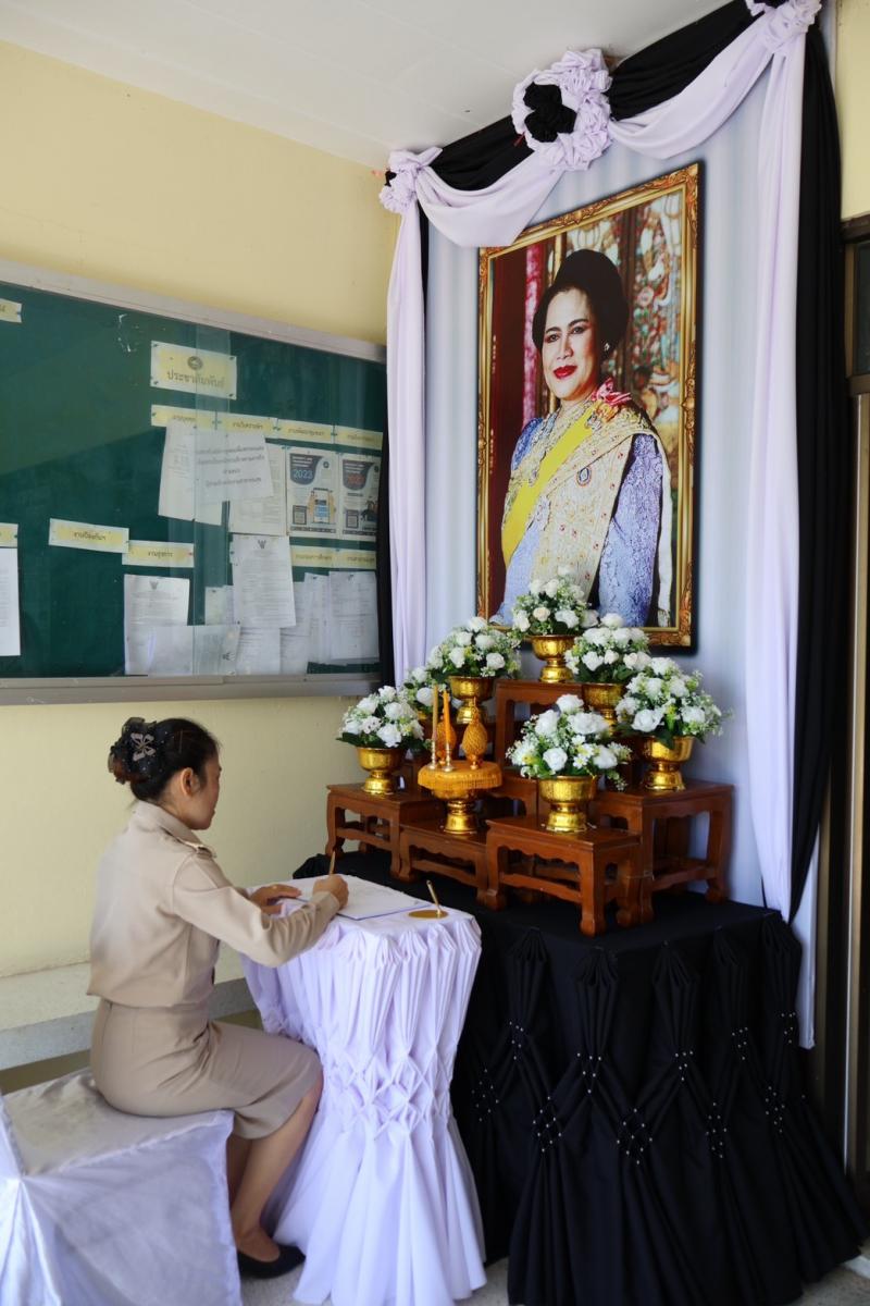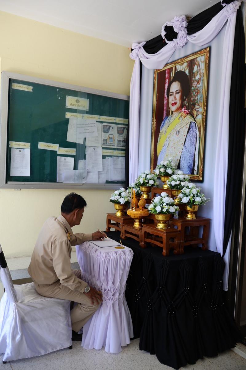 ลงนามถวายความอาลัย และถวายสักการะหน้าพระฉายาลักษณ์ สมเด็จพระนางเจ้าสิริกิติ์ พระบรมราชินีนาถ พระบรมราชชนนีพันปีหลวง