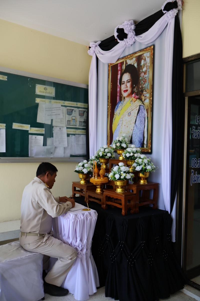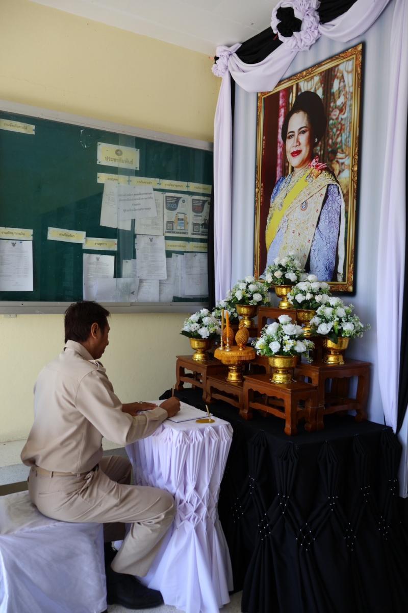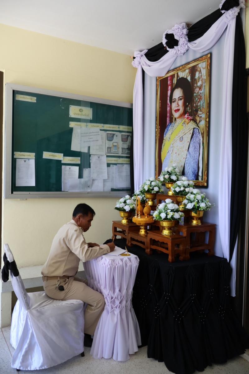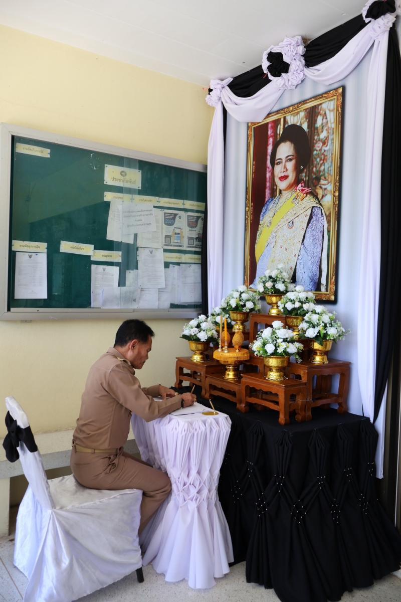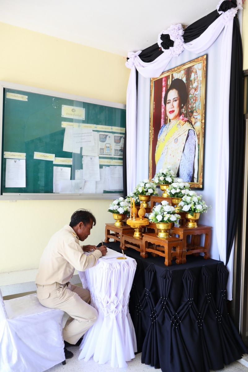 ลงนามถวายความอาลัย และถวายสักการะหน้าพระฉายาลักษณ์ สมเด็จพระนางเจ้าสิริกิติ์ พระบรมราชินีนาถ พระบรมราชชนนีพันปีหลวง