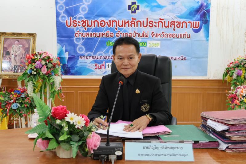 "นายภิญโญ ศรีทัพสกุลชาย" นายกองค์การบริหารส่วนตำบลแคนเหนือ ประธานกองทุนหลักประกันสุขภาพ องค์การบริหารส่วนตำบลแคนเหนือ พร้อมด้วยคณะกรรมการกองทุนฯ เข้าร่วมประชุมกองทุนหลักประกันสุขภาพ องค์การบริหารส่วนตำบลแคนเหนือ ครั้งที่ 1/2569 เพื่อรายงานการเงิน ไตรมาสที่ 4/2568 สรุปผลการดำเนินโครงการปีงบประมาณ 2568 พร้อมพิจารณาอนุมัติแผนงาน/โครงการที่ขอรับการสนับสนุนงบประมาณจากกองทุนหลักประกันสุขภาพฯ ปีงบประมาณ 2569 ครั้งที่ 1/2569 ณ ห้องประชุมองค์การบริหารส่วนตำบลแคนเหนือ