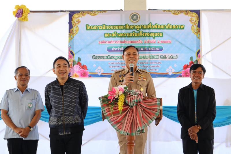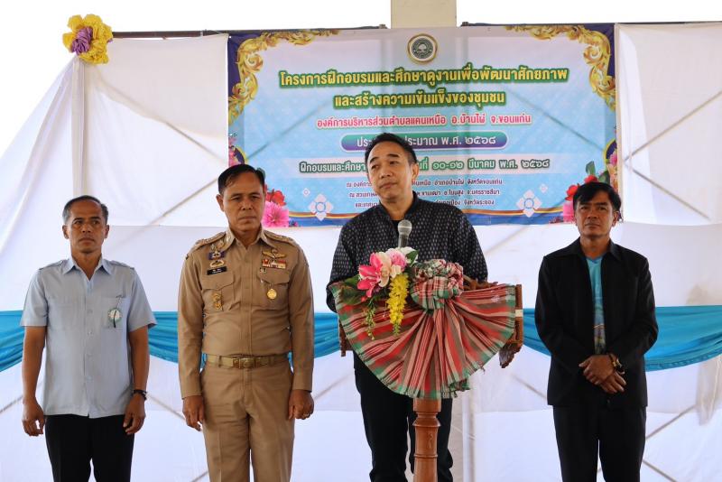 รายละเอียด : วันที่ 10 มีนาคม 2568 เวลา 09.00 น. องค์การบริหารส่วนตำบลแคนเหนือ นำโดย "นายภิญโญ ศรีทัพสกุลชาย" นายกองค์การบริหารส่วนตำบลแคนเหนือ จัดงานโครงการฝึกอบรมและศึกษาดูงานเพื่อพัฒนาศักยภาพและสร้างความเข้มแข็งของชุมชน ประจำปีงบประมาณ พ.ศ.2568 ในการนี้ ได้รับเกียรติจาก "นายองอาจ ฉัตรชัยพลรัตน์" สมาชิกสภาผู้แทนราษฏรจังหวัดขอนแก่น เป็นประธานในพิธีเปิด และ "นายกองโท พิชัย วันตา" นายอำเภอบ้านไผ่ ร่วมเป็นเกียรติในพิธีเปิด โดยมี "นายภิญโญ ศรีทัพสกุลชาย" นายกองค์การบริหารส่วนตำบลแคนเหนือ กล่าวรายงาน พร้อมคณะผู้บริหาร ปลัด อบต. หัวหน้าสำนักปลัด หัวหน้าส่วนราชการ สมาชิกสภา อบต. พนักงานเจ้าหน้าที่ อบต.แคนเหนือ และทีมอสม.แต่ละหมู่บ้าน เข้าร่วมโครงการฯ
