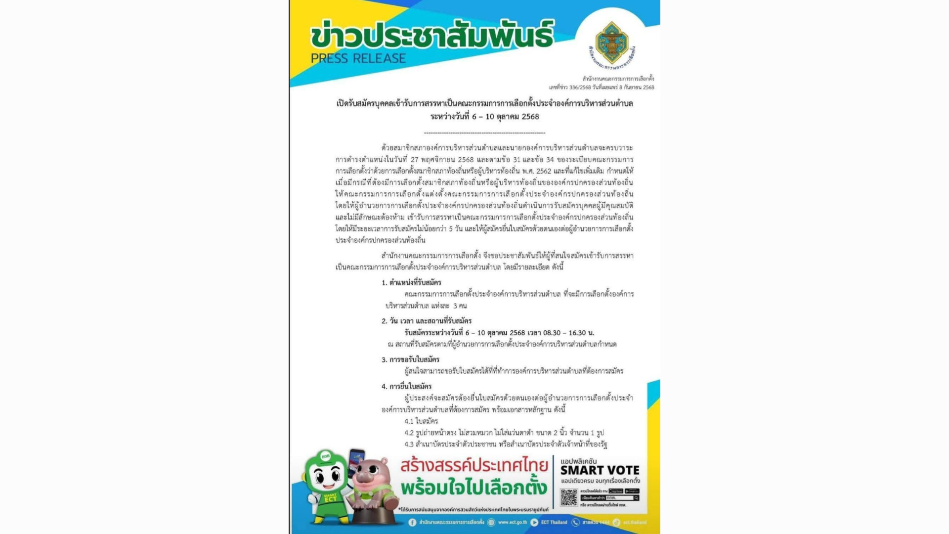 ประชาสัมพันธ์ ประกาศ เรื่อง การรับสมัครบุคคลเข้ารับการสรรหาเป็นคณะกรรมการการเลือกตั้ง ประจำองค์การบริหารส่วนตำบลแคนเหนือ