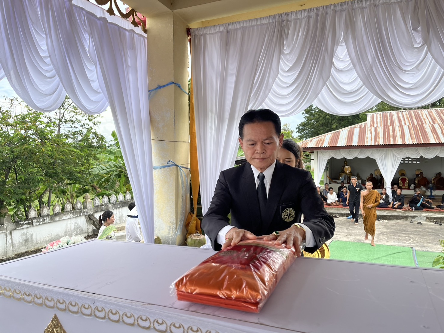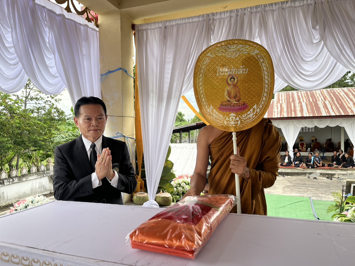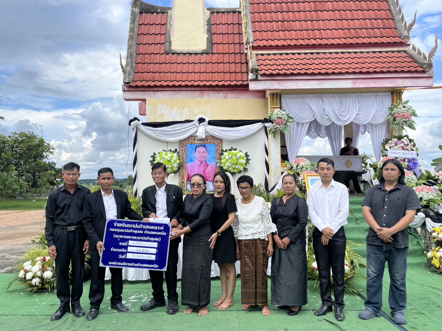 วันที่ 20 กันยายน 2568 เวลา 13.00 น. ณ วัดเหล่าหลวง บ้านเหล่าหลวง ม.4 "นายภิญโญ ศรีทัพสกุลชาย" นายกองค์การบริหารส่วนตำบลแคนเหนือ วางผ้าไตรบังสุกุลไตรรองปิด พร้อมด้วยคณะผู้บริหาร ปลัด อบต. ผู้อำนวยการกอง หัวหน้าสำนักปลัด หัวหน้าส่วนราชการ และพนักงานเจ้าหน้าที่ อบต.แคนเหนือ ร่วมงานฌาปนกิจศพ "นายบุญมา สุดใหญ่" (บิดาของนายราเมศ สุดใหญ่ ตำแหน่ง ผู้ช่วยนักจัดการงานทั่วไป) บ้านเหล่าหลวง ม.4 ในนามประธานพร้อมด้วยคณะกรรมการกองทุนฌาปนกิจชุมชนตำบลแคนเหนือ (ธนาคารขยะ) ได้มอบเงินกองทุนฯ รายที่ 41/2568 (รายที่ 2 เดือน กันยายน 2568) จำนวนเงิน 16,820 บาท ให้แก่ญาติผู้เสียชีวิต